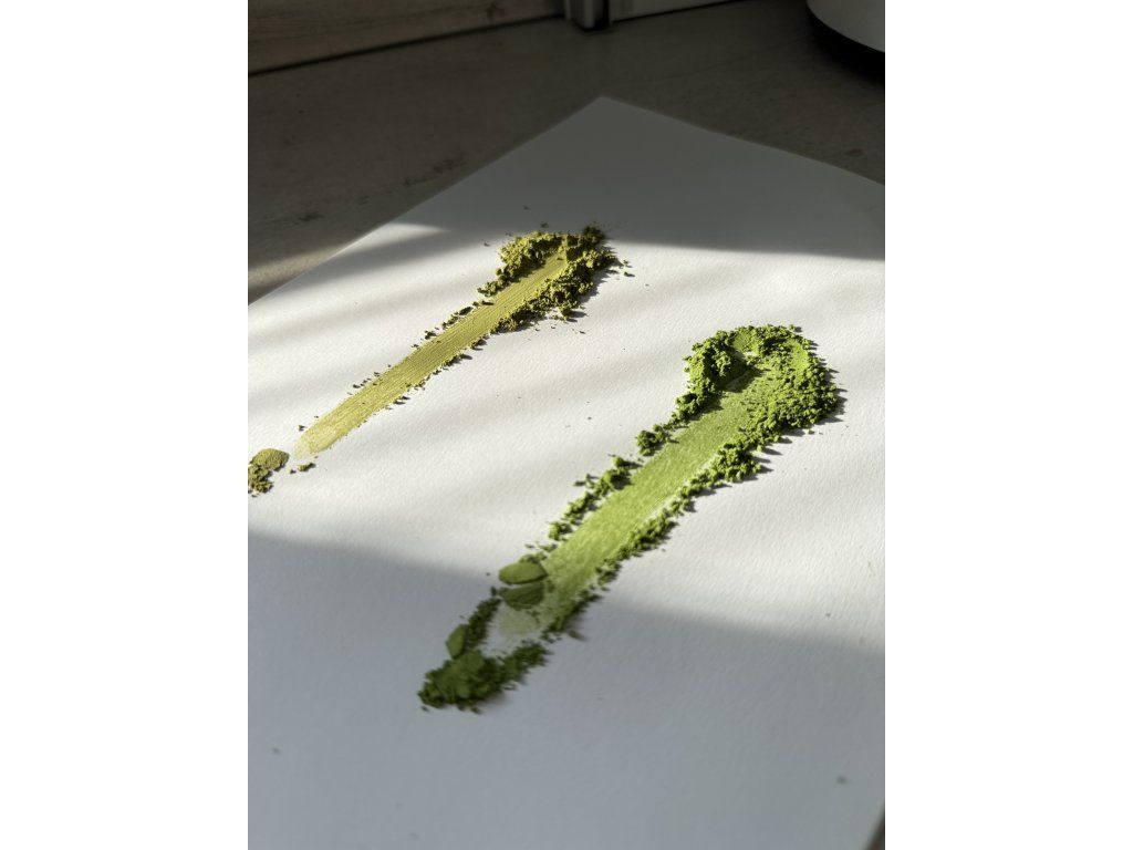 Matcha má sýto zelenú, žiarivú farbu – znak vysokého obsahu chlorofylu a šetrného spracovania. Jemne mletý prášok sa ľahko rozmieša a vytvára hustú, smaragdovú penu.